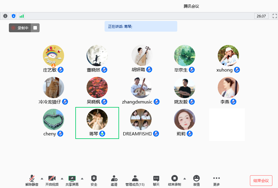 交响乐团指导老师蒋琴汇报了疫情以来交响乐团的工作与活动开展情况,在管弦乐教研室主任原嫄老师的带领下指导老师们开展了一系列的工作研讨会议,坚持思想引领与专业指导并重,共同努力开展线上课程80节。预计九月开学后,交响乐团将迎来红色三部曲《中山情》的排演。