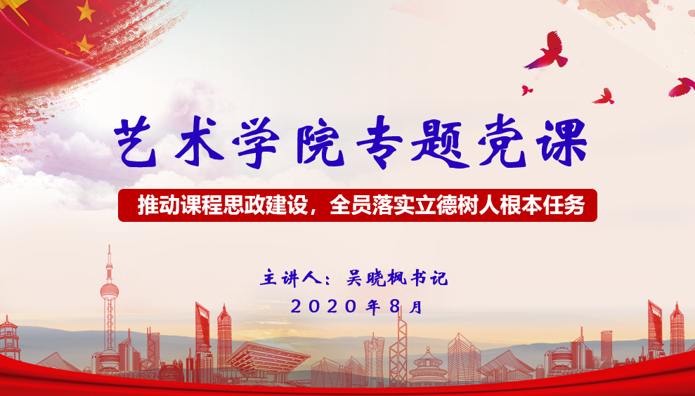2020年8月3日,艺术学院高水平艺术团临时党团支部召开线上党员大会。艺术学院直属党支部书记吴晓枫作《推动课程思政建设,全面落实立德树人根本任务》的专题党课,会议由副书记李燕主持。