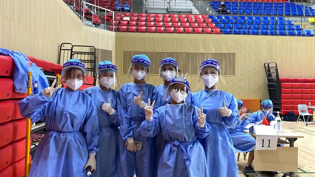 6月5日,本科一年级的黄思媛、董依依、郑映芳、赵梓岚、何思迪、岑葆宜、黄紫萸等七位同学主动请缨,共同协助医护人员进行核酸检测。