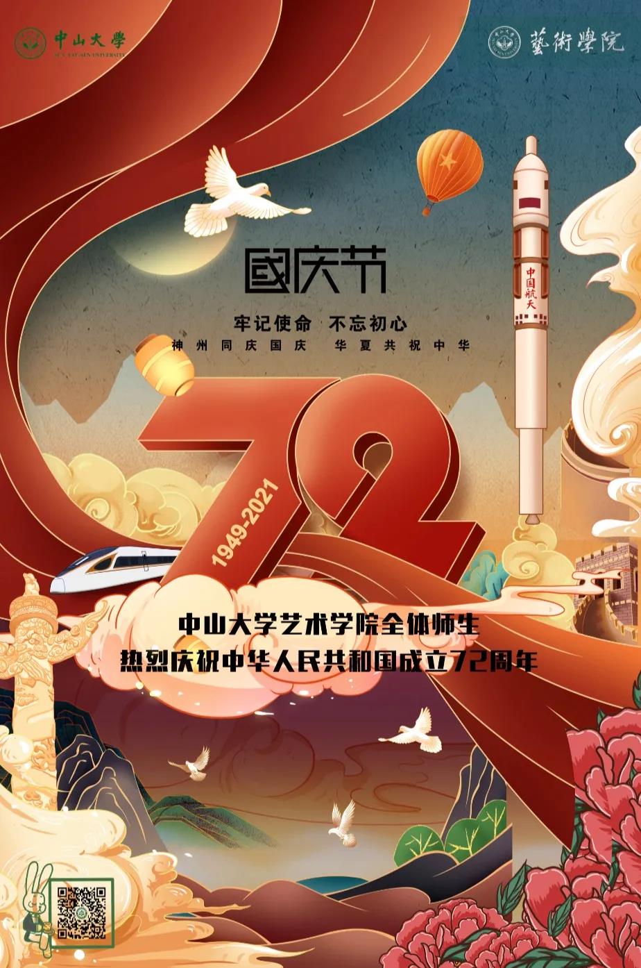 导航痕迹 中山大学艺术学院 学院概况 学校动态 艺术学院全体师生热烈庆祝中华人民共和国成立72周年 扫描此二维码分享 艺术学院全体师生热烈庆祝中华人民共和国成立72周年 发布人:网站编辑 责任审核人:金婷婷 系统审核人:吴晓枫 发布日期:2021-10-01 巍巍东方,黄河汤汤 惟我中华,源远流长 岁月峥嵘,河山万里 是你我心之所系 祝福祖国繁荣昌盛 国泰民安!