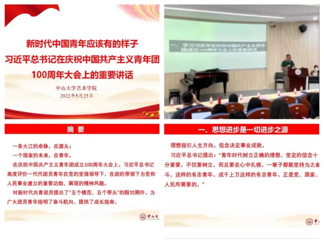 为深入学习习近平总书记在庆祝中国共产主义青年团成立100周年大会上的重要讲话精神,表彰我院荣获“2021-2022年度中山大学五四红旗团支部、优秀共青团员、优秀共青团干部和优秀团支部书记”称号的集体和个人,进一步总结学院劳动教育与艺术实践工作经验 、培养学生纪律与安全意识,艺术学院于2022年5月25日下午在学院楼206室召开全体学生大会暨五四表彰大会。艺术学院直属党支部书记李明章、学生工作团队老师及全体学生参加了本次会议,会议由李燕副书记主持。