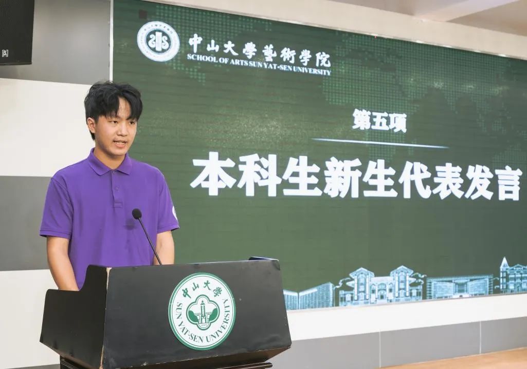 金院长指出百年岁月滋养了中大悠久的学术根脉,人文艺术的薪火也随着历史的奔流而生生不息,如鲁迅、陈寅恪、马思聪等都曾在中山大学执教,激发了无数青年学子“向上走”的澎湃力量。中山大学艺术学院赓续前行,融合中西艺术精粹,营造融通艺术与人文的浓厚氛围。少年成志,未来可期,金院长也对新生们的未来发展提出了殷切希望,希望同学们始终保有对专业学习的热情,又要注意专与博的统一,广泛的汲取知识,激活思想,探寻学术之真、艺术之美。同时要注重知行合一,在实践中不断拓宽视野,解答中国艺术发展的实践课题。最后,金院长祝愿同学们乘上艺术的一叶轻舟,找到自己的人生航向,不负先贤,不负时代,不负未来。