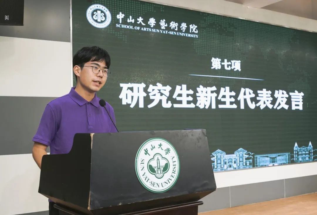 2022级研究生新生代表万锦森同学以《心之所向,笃行不怠》发表了感言。万锦森同学倡议在座的中大学子们在中山大学迈进高质量内涵式发展新阶段之时,在向第二个百年奋斗目标奋进之际,勇担时代使命,与艺术学院同程,与中山大学同道,与祖国同向,与时代同行,讲好中大故事,弘扬中大精神,凝聚中国力量,迈向光明未来。