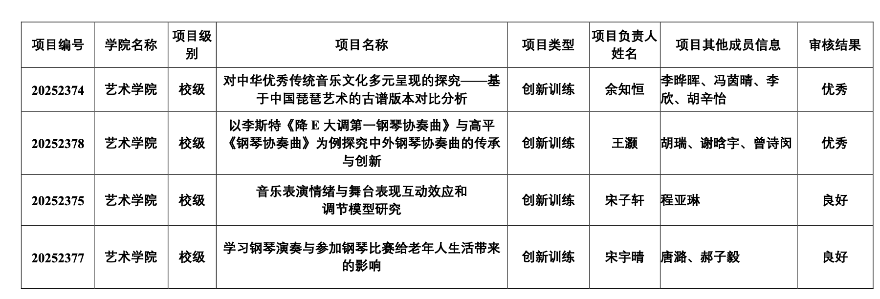 艺术学院2025年大学生创新创业训练计划项目结题验收结果公示